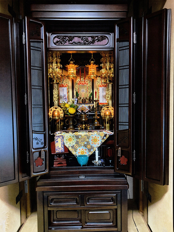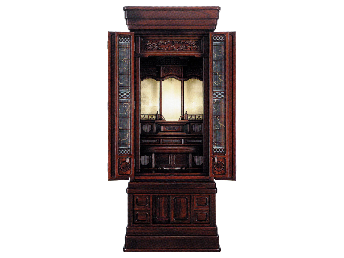 二方厚板貼り・角丸・透かし彫りムクランマ・台輪大引出を搭載した満足仕様のお仏壇。伝統技術と職人技、双方を融合させた伝統的唐木仏壇です。